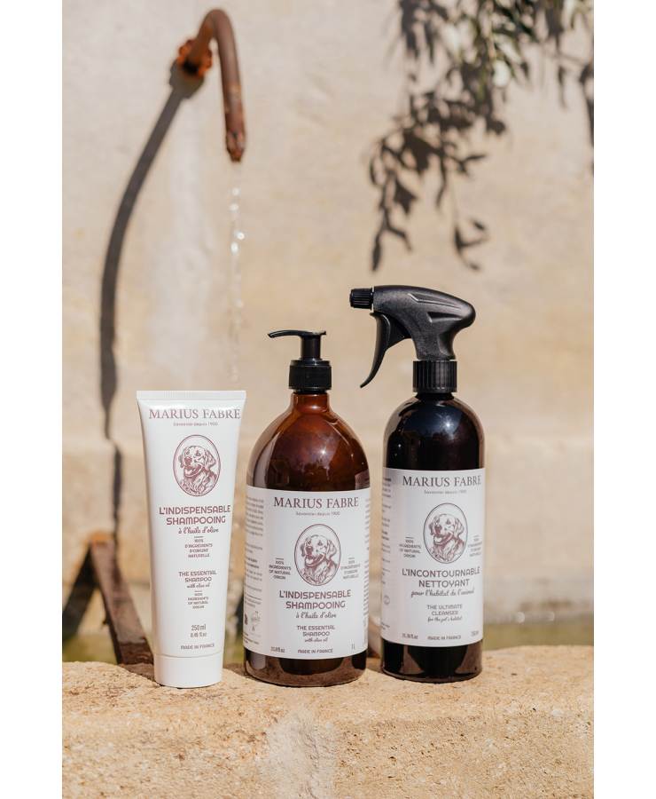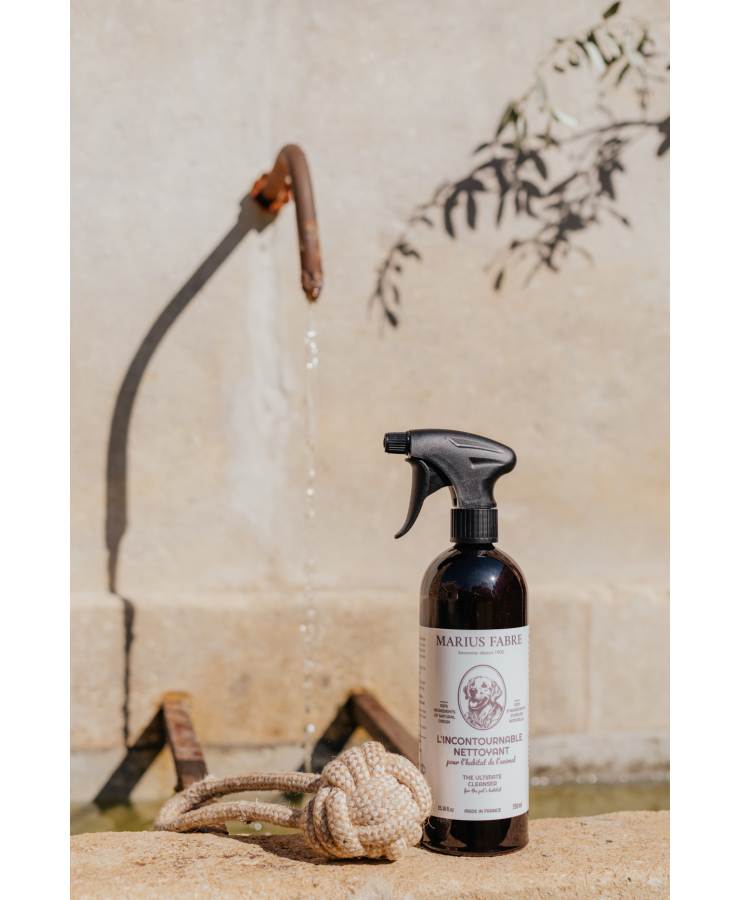 Ausgestattet mit einem Sprühkopf ist dieses Produkt ideal, um die Umgebung Ihres Haustieres einfach zu reinigen und zu desinfizieren: kleine Flächen, Napf, Zwinger, Teppich, Spielzeug, Halsband... Da Ihr Hund in ständigem Kontakt mit seinen Gegenständen steht, wird dieser Reiniger ausschließlich aus Pflanzenöl hergestellt, ohne Farbstoffe, Parfüm oder chemische Zusätze. Seine natürliche Farbe verdankt es dem darin enthaltenen Olivenöl. Seine Qualität wird von der Seifenfabrik Marius Fabre garantiert, einem Hersteller von Naturprodukten seit 1900 und vier Generationen.